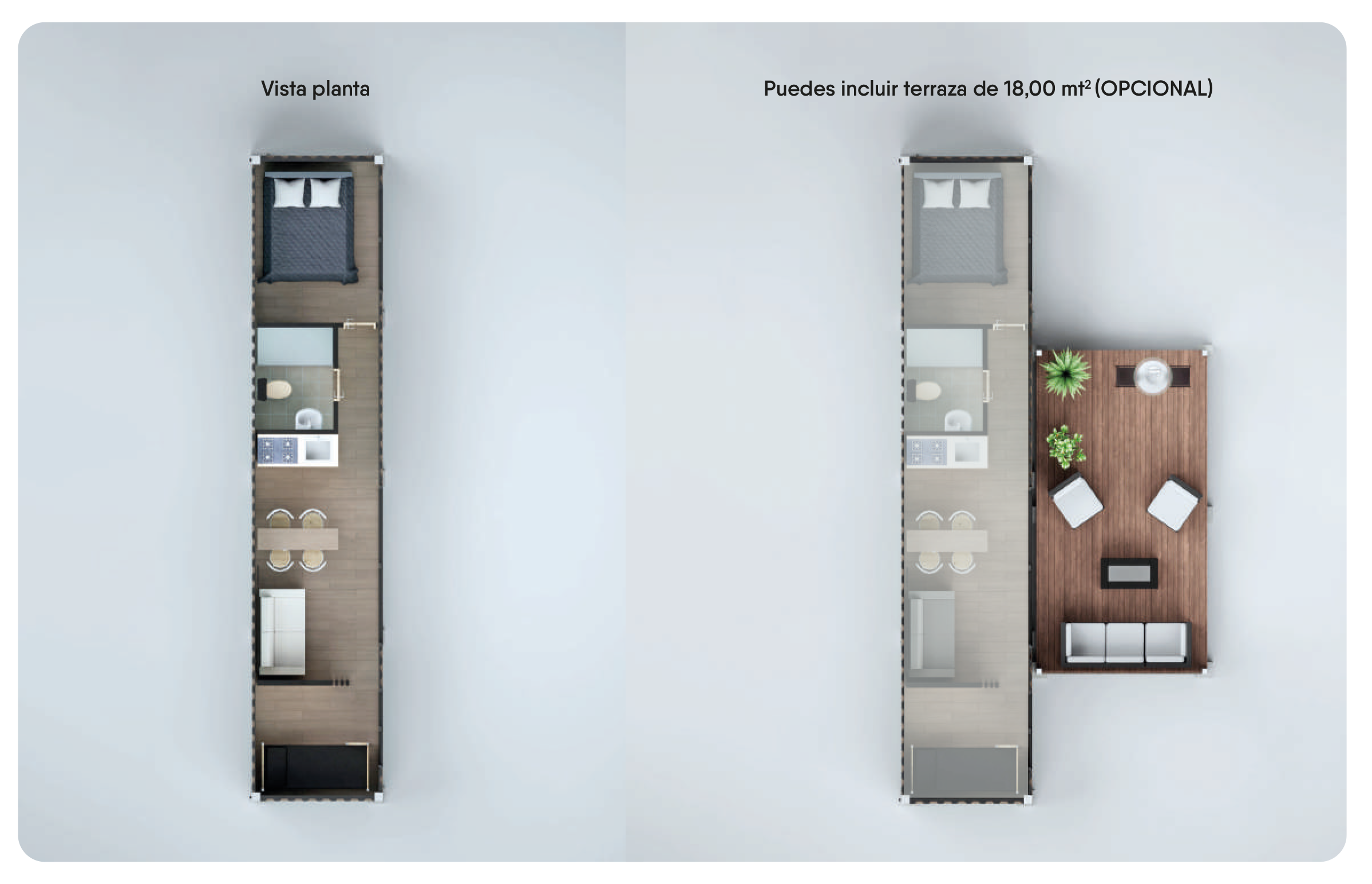 En Tiny Space, nos especializamos en diseñar y vender tiny houses que combinan simplicidad, sostenibilidad y comodidad.